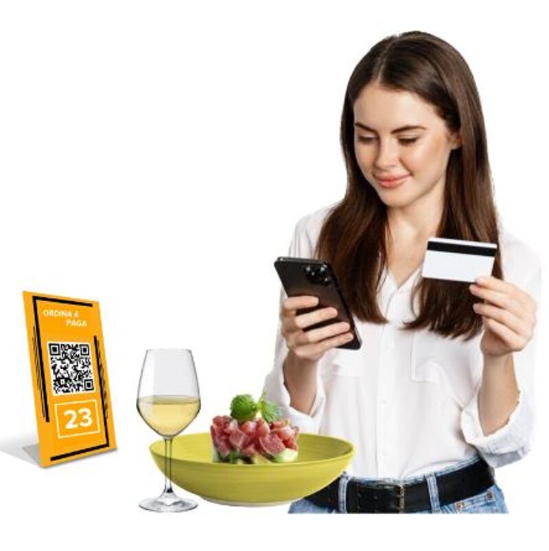 Velocizza il servizio e consenti ai tuoi clienti di scansionare il Qr Code fornito da Noi per far interagire i tuoi clienti con il menu e consentire di ordinare e pagare in totale autonomia. Il sistema provvederà a smistare le comande ai reparti interessati ed in pre-conto automatico in cassa.